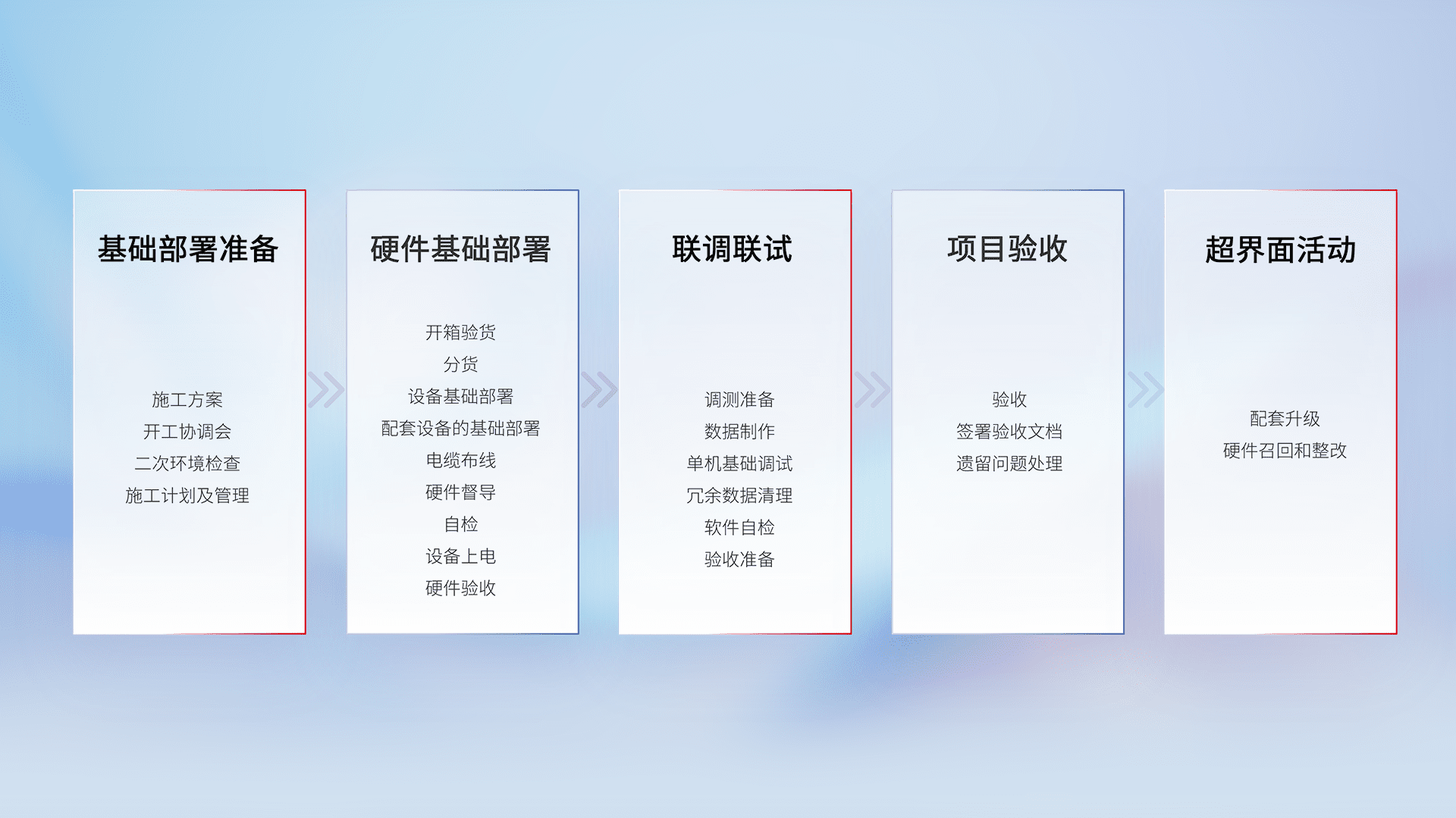 从基础部署准备、、、、硬件基础部署、、联调联试、、项目验收、、越界面活动的全过程可追溯,,,保证施工质量和进度。。。。
